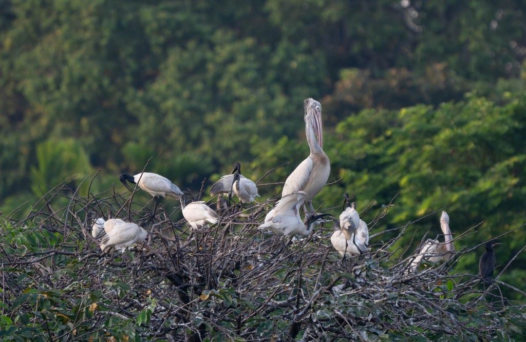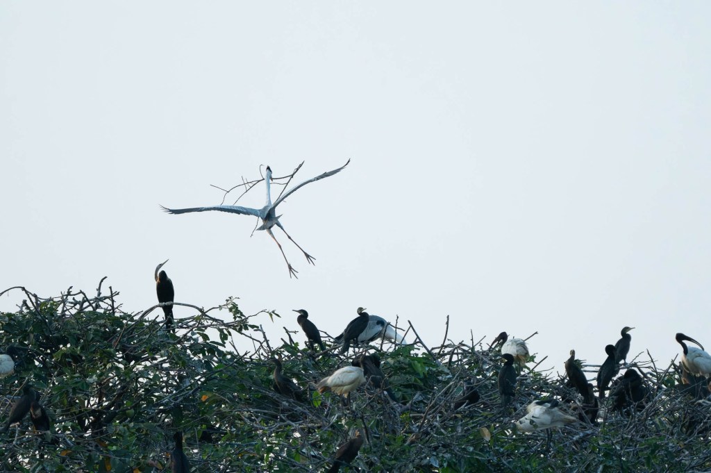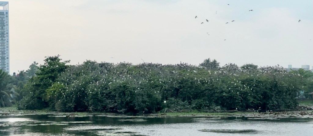 There is a small island in the middle of the lake – Coca Island, according to Google Maps. So close to a busy road and in a built up area, I wouldn’t have expected it to be a biodiversity hotspot, but this has to be one of the most remarkable areas in Colombo. Over the last five months hundreds of birds have nested on the island, including the spectacular painted storks, oriental darters and great egrets.