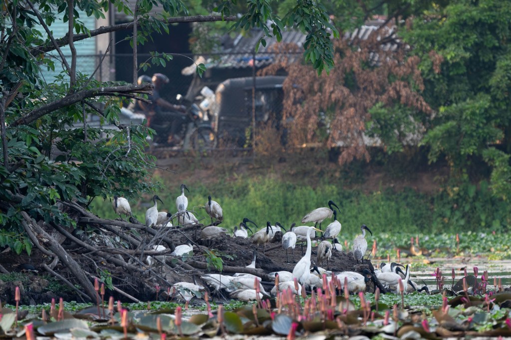 At the moment hundreds of black faced Ibis and Cattle Egrets fly in to forage and roost each evening, purple and grey herons are raising chicks and scores of little cormorants rest. On the lake pheasant tailed jacanas, spot billed pelicans and grey-headed swamp hens, search for food amongst the water lilies. It’s an amazing spot. I wonder how long it will last.